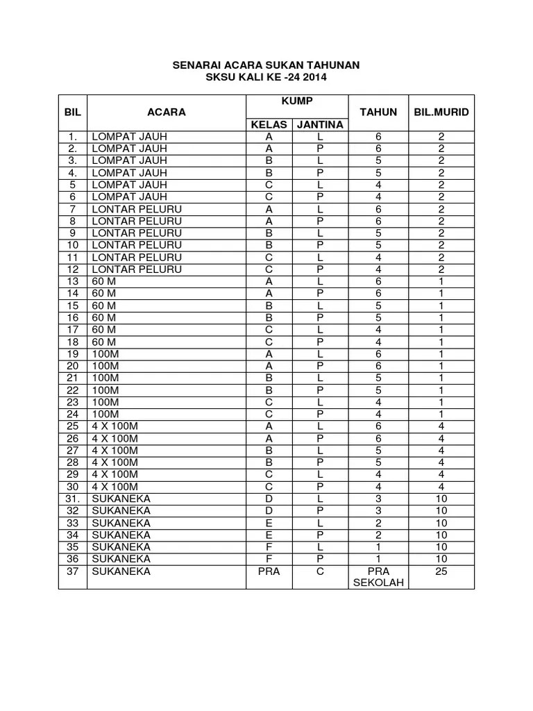 Senarai acara sukaneka kanak kanak. Senarai cadangan dan panduan acara sukaneka hari guru cikgu share 1 0. Apa kata korang selitkan aktiviti sukaneka seperti di bawah; Jom tonton video untuk cari idea buat aktiviti atau game yang best lagi meriah untuk pengisian hari keluarga.aktiviti bukan sahaja untuk . You have just read the article entitled . 15 idea sukaneka untuk hari sukan team building atau family day. 9 idea game yang best semasa .